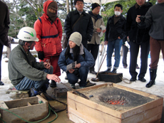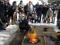 鳥取城跡では、上月協議会副会長と石工の平尾氏により鍛冶の実演を見学させていただきました。大雪の寒い中、ありがとうございました。