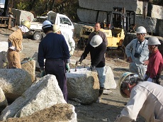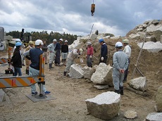 ![]() ■実習(説明) | ![]() ■実習(石の選定) | ![]() ■実習(石のクレーン吊上) |