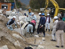 ![]() ■実習(石割) | ![]() ■実習(石積み) | ![]() ■実習(石積み) |