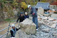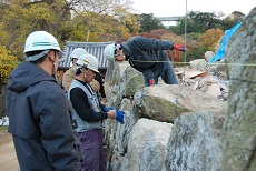 姫路城清水門跡石垣保存修理現場において、平成23年12月5日(月)から10(土)まで、修理現場見学や同質の石材加工などの実習を行いました。