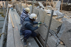 文化財石垣の保存修理に携わる中堅技能者、及び現場管理を行う技術者の知識の習得と資質の向上を目的とする第1回研修会を、平成25年7月12日(金)から15日(月・祝)に行いました。