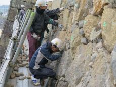 特別史跡姫路城跡の井戸曲輪石垣修理現場において、平成28年2月7日(日)と2月22日(月)から2月24日(水)まで石垣間詰石補充作業へ参加し研修を行いました。